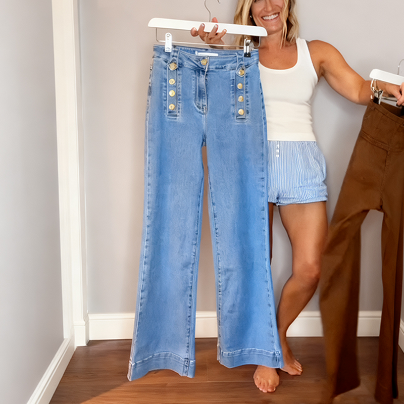 Le paquet comprend : 1 * jean évasé à taille haute et boutons sur le devant pour femme