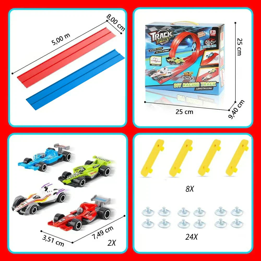 La piste s'étend sur une longueur impressionnante de 4 mètres ! Notre circuit de course flexible n'est pas seulement un circuit de course, c'est une aventure que les enfants peuvent construire eux-mêmes. Des boucles et des rampes aux descentes vertigineuses, chaque circuit créé apporte de nouvelles sensations fortes et une excitation qui les incite à revenir.